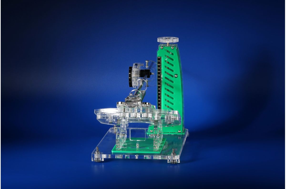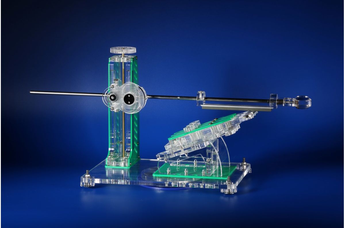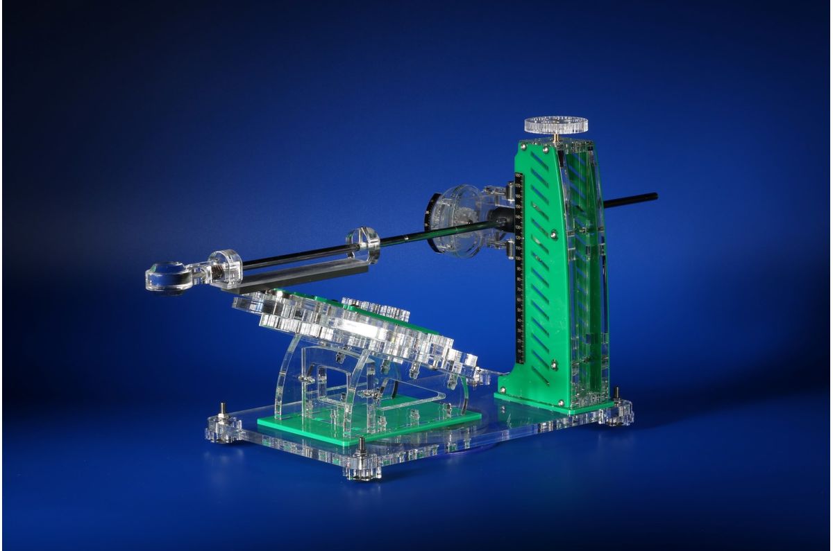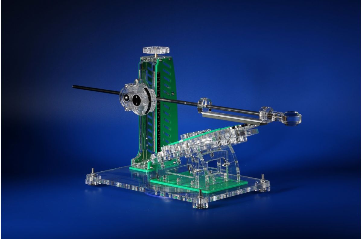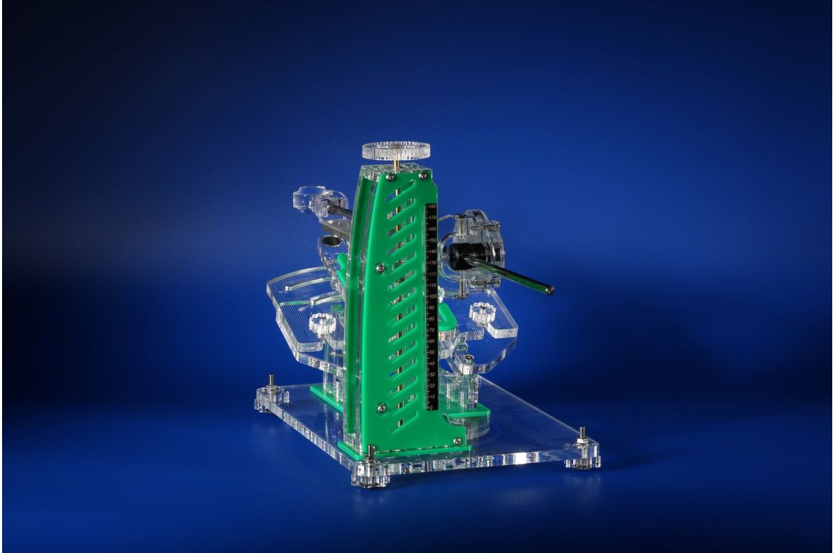 Přesný úhloměr s převodem 1:4 – každé pootočení o 1° znamená pohyb disku o 4°, což umožňuje extrémně citlivé a přesné nastavení úhlu.